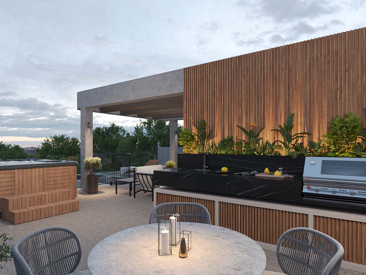 This exclusive project features 26 elegant units, including modern one- and two-bedroom apartments and spacious three-bedroom penthouses with private rooftop verandas and built-in barbecue areas-perfect for relaxing or entertaining with panoramic views.
