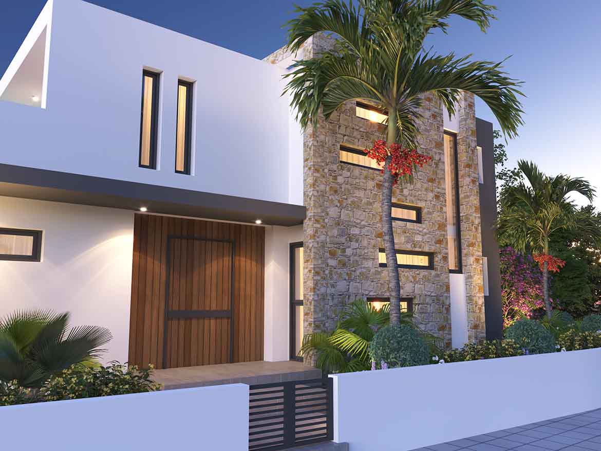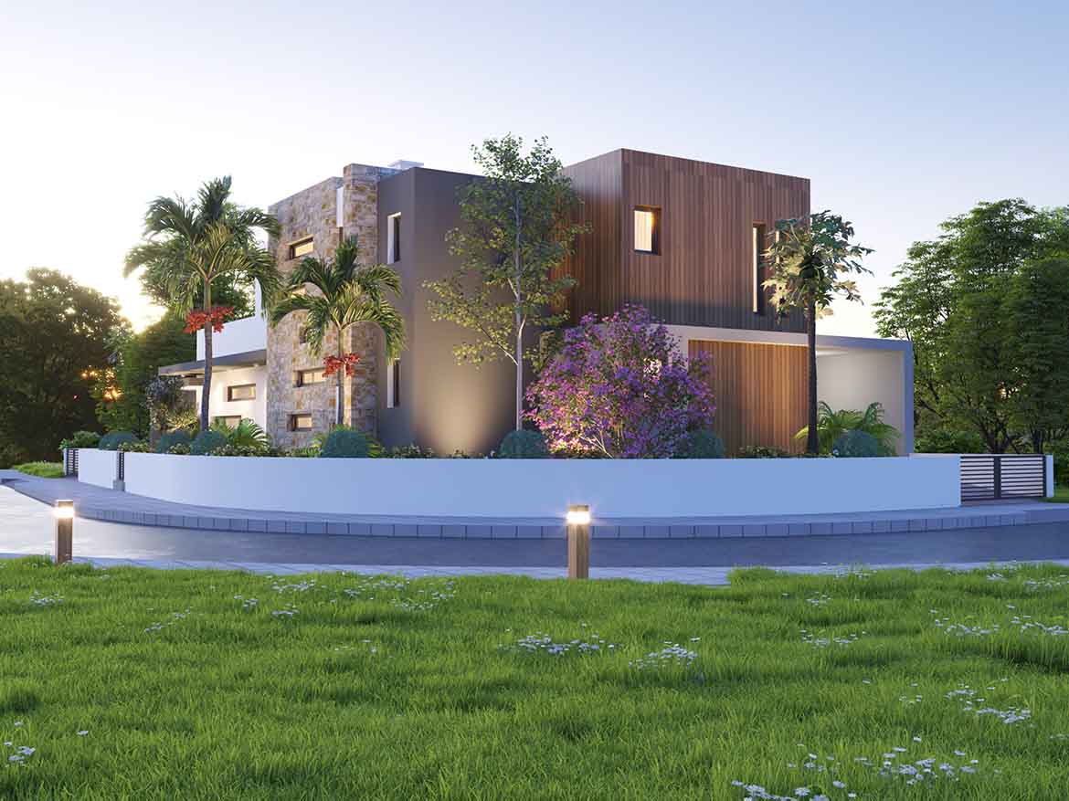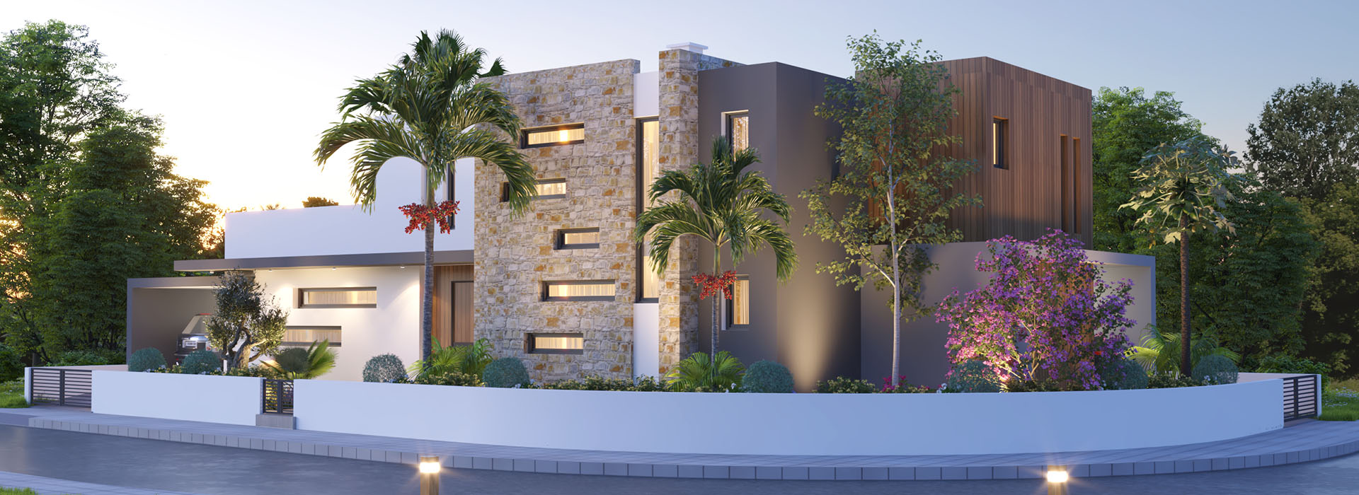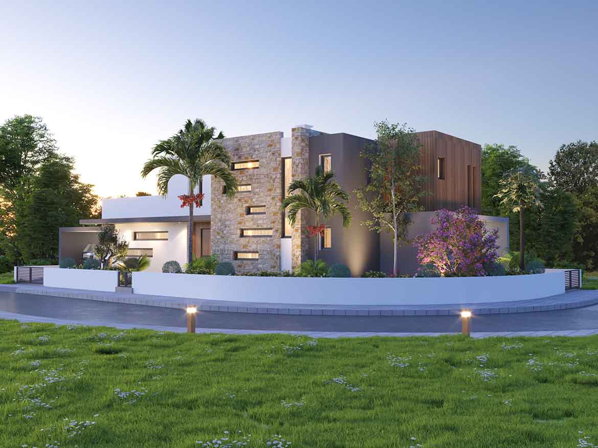 The Olympic Villa, a contemporary 4-bedroom Mediterranean villa situated in Livadia, Larnaca, within a new residential neighborhood. Situated in a corner plot size of 511 sqm, with the Villa being a unique L-shaped, two-storey design with a total internal covered area of 230 sqm.