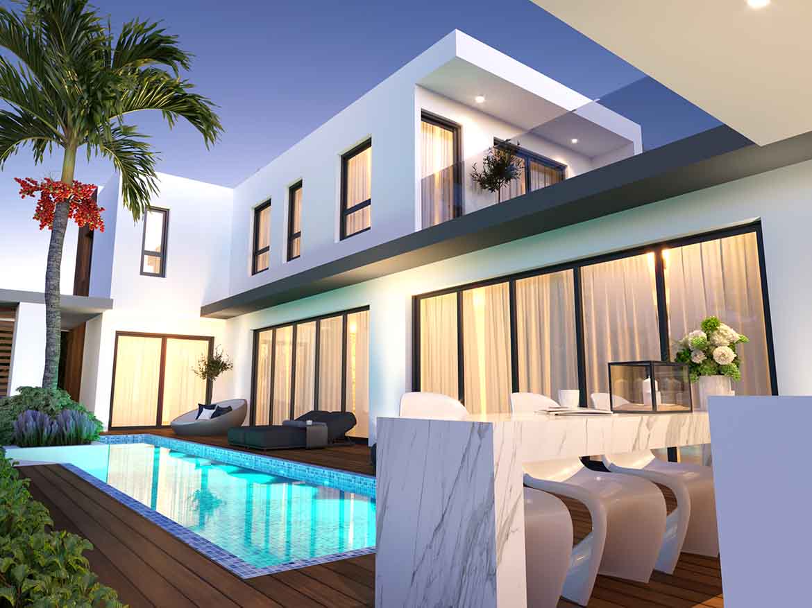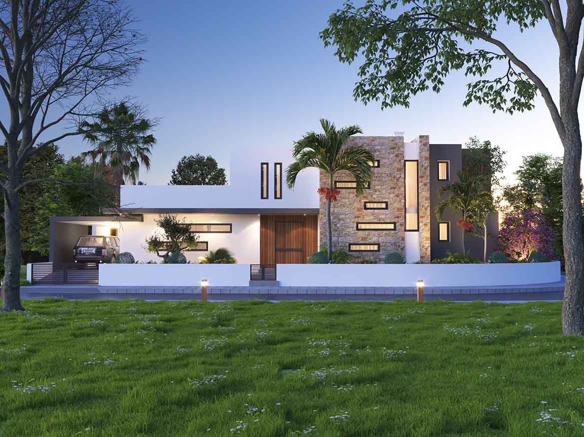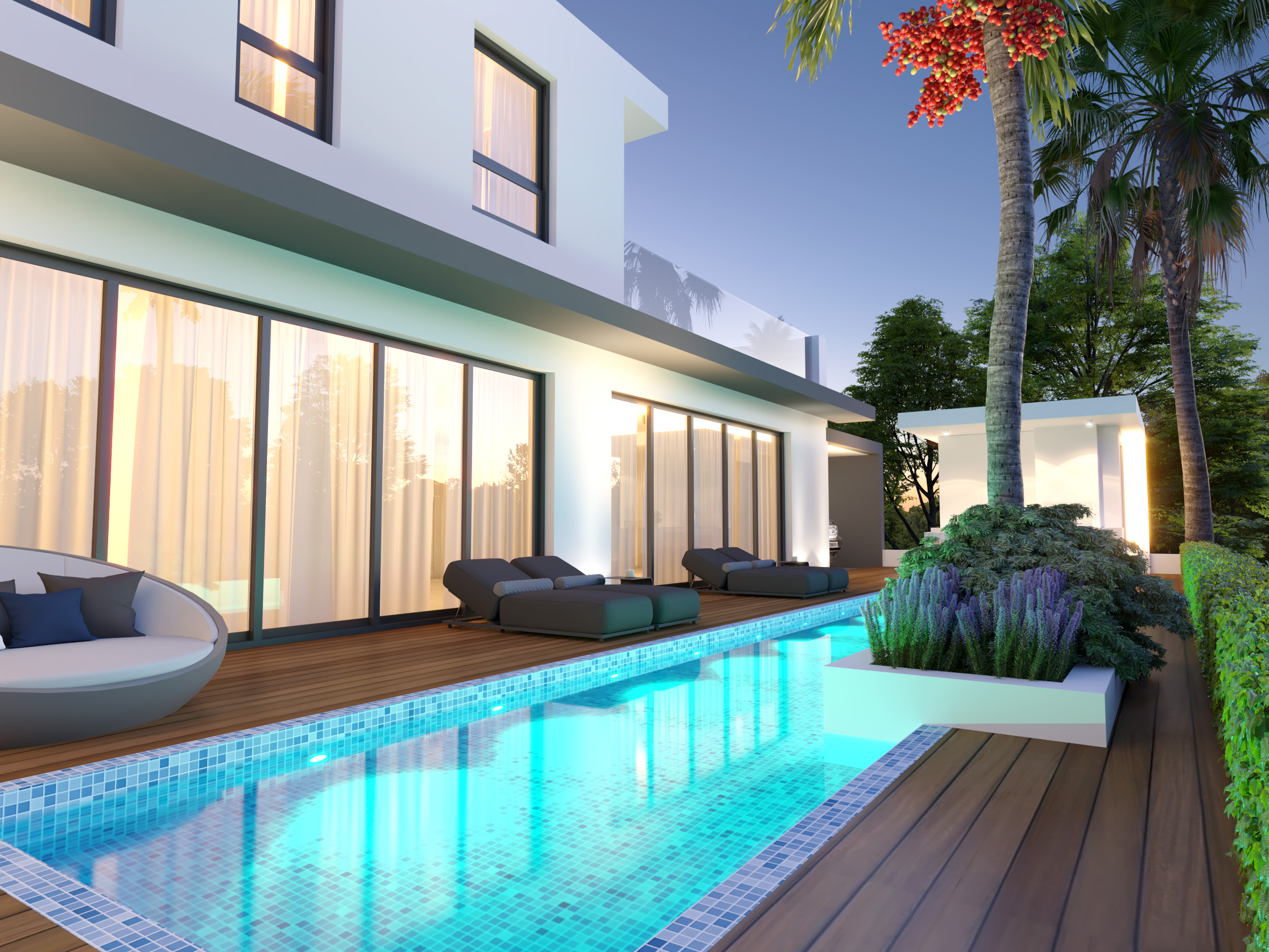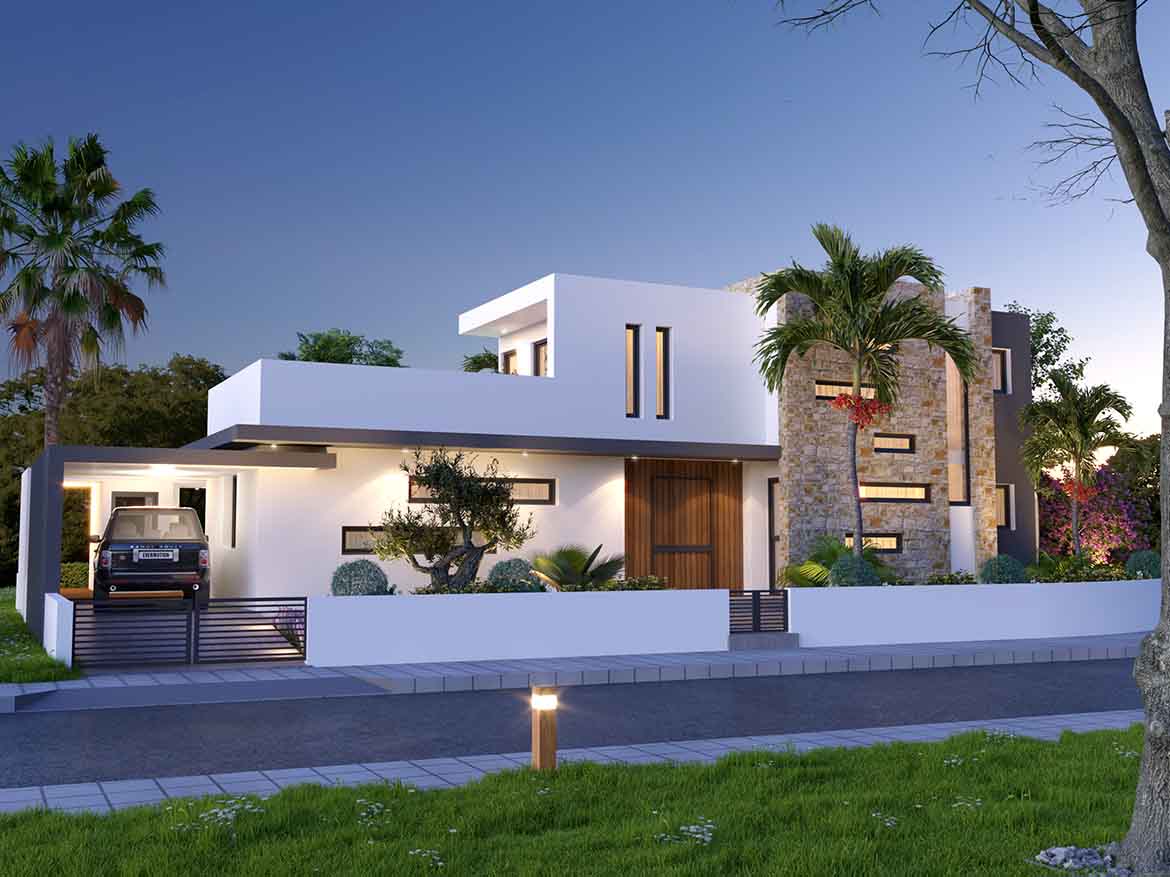 The Olympic Villa, a contemporary 4-bedroom Mediterranean villa situated in Livadia, Larnaca, within a new residential neighborhood. Situated in a corner plot size of 511 sqm, with the Villa being a unique L-shaped, two-storey design with a total internal covered area of 230 sqm.