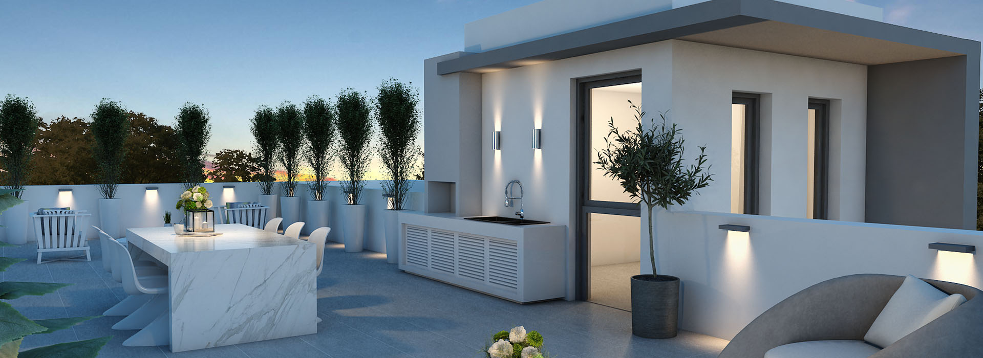 Upon entering, you'll be greeted by a spacious open-plan layout that seamlessly connects the kitchen, living, and dining areas. The living/dining area provides a comfortable and stylish setting for relaxation and entertainment. The house comprises three bedrooms, including a master bedroom complete with an en-suite WC and shower for added privacy and convenience. The additional family bathroom is beautifully appointed and serves the remaining bedrooms. The property also boasts spacious covered verandas (17 sqm). For the ultimate indulgence, the property features a delightful roof garden, complete with a jacuzzi.