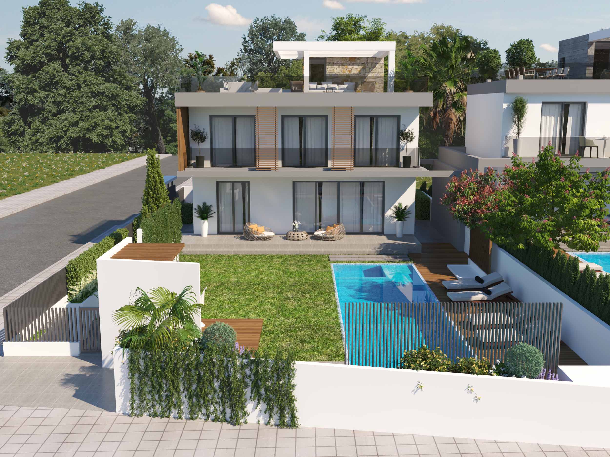 Discover the epitome of coastal luxury with our upcoming brand-new sea view villas, the Sunrise Villa, soon to grace Dhekelia road in Larnaca, Cyprus. These meticulously designed homes boast a prime location, within walking distance to the beach and close proximity to all amenities. Embracing a spacious 490 sqm plot area, the villas offer approximately 170 sqm of covered living spaces, featuring a unique design that sets them apart. Enjoy panoramic views and serene moments on the rooftop garden, while energy efficiency is ensured through cutting-edge construction and a photovoltaic system.